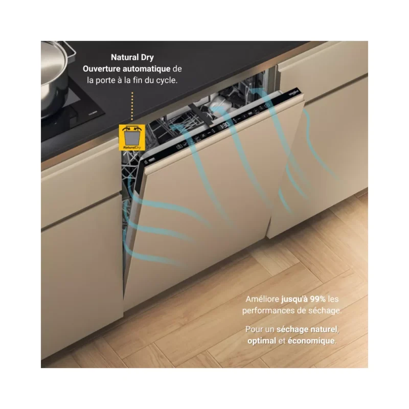 - Type de séchage : naturel grâce à l’ouverture de la porte du lave-vaisselle en fin de programme