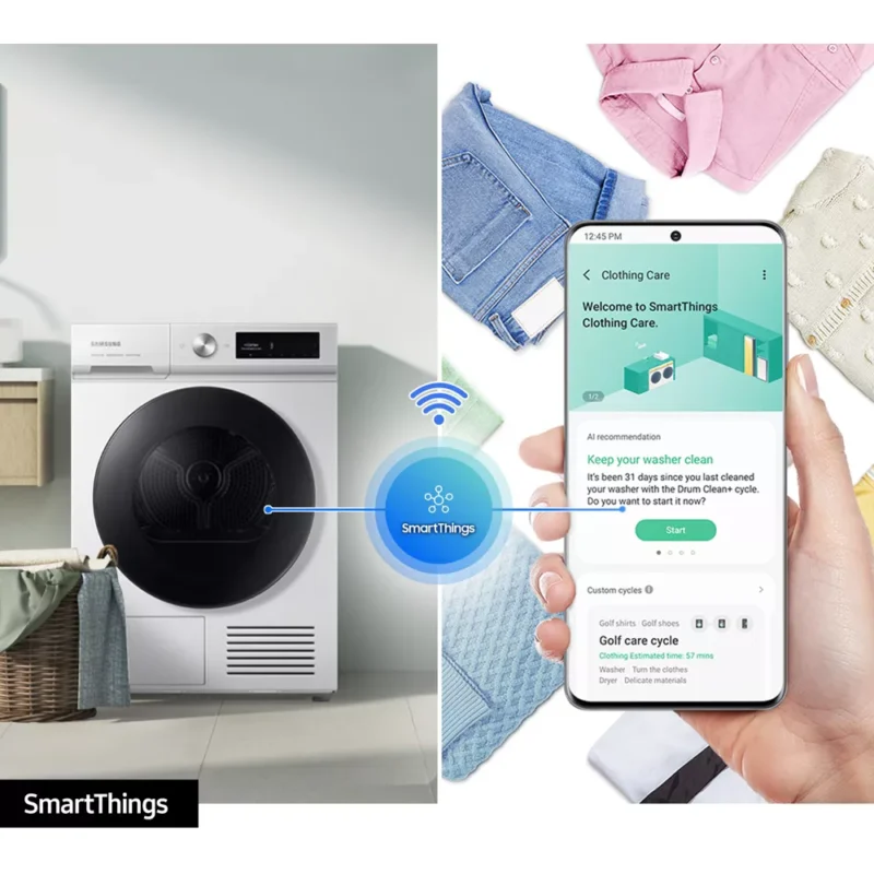 Avec son tambour pouvant accueillir jusqu’à 9 kg de linge, le sèche-linge SAMSUNG DV90BB7445GWS3 Bespoke vous facilitera la vie au quotidien. Il conviendra notamment aux familles nombreuses qui ont besoin de sécher de grandes quantités de linge en peu de temps.