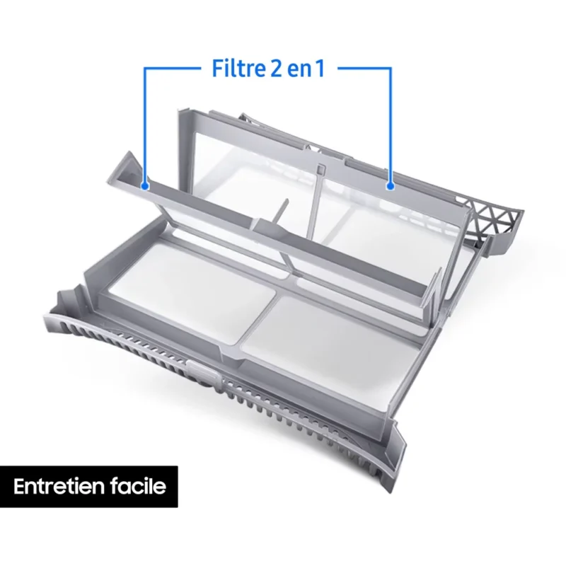Enfin, le sèche-linge SAMSUNG DV90BB7445GWS3 Bespoke améliore le séchage à l’aide d’une technologie avancée appelée AI Dry. Grâce à des capteurs de température et d’humidité, cette fonctionnalité analyse en temps réel les données de séchage et ajuste automatiquement le temps et la température de séchage en fonction des besoins de chaque cycle de lavage.