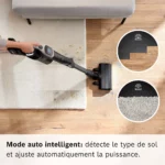 L’aspirateur balai multifonction BOSCH Unlimited 10 BSS1041GHF redéfinit les standards du nettoyage avec sa technologie MicroClean, capable d’aspirer plus de 99,9 % des poussières et de détecter les particules jusqu’à 0,3 micron. Sa brosse MicroClean avec LED assure un nettoyage efficace sur tous les types de sols, tandis que le moteur TurboSpin, conçu en Allemagne et garanti 10 ans, offre des performances durables. Avec une batterie interchangeable de 4,0 Ah et 6 modes de nettoyage adaptés à chaque situation, cet aspirateur balai sans fil garantit jusqu’à 80 minutes d’autonomie en mode Eco, assurant ainsi un nettoyage complet sans interruption. L’ingénierie allemande, synonyme de qualité et de fiabilité, est complétée par un indice de réparabilité exceptionnel de 9,7, témoignant de l’engagement de BOSCH envers la durabilité et la maintenance aisée de ses appareils.