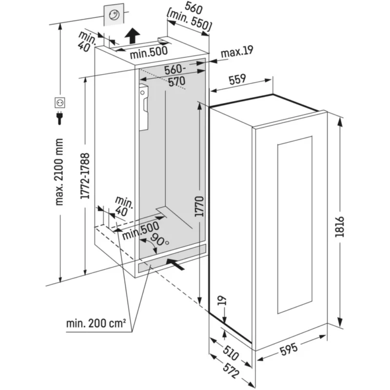 - Cave encastrable : permet d’être intégré parfaitement dans une cuisine ou un meuble existant, créant ainsi un aspect plus esthétique et élégant.