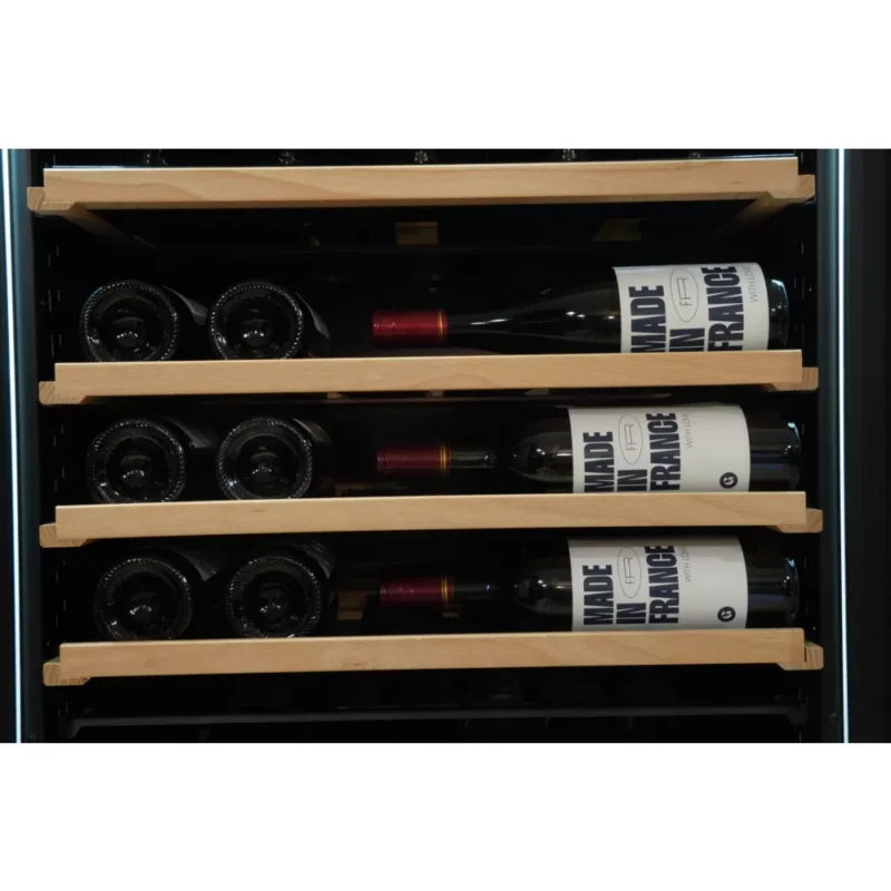 - Matériau des clayettes : bois, permet d’offrir une conservation optimale pour le vin en maintenant le liège en contact avec le vin et une durabilité à long terme