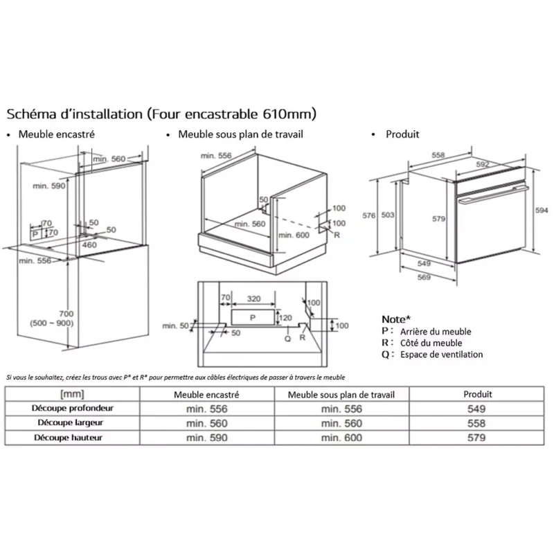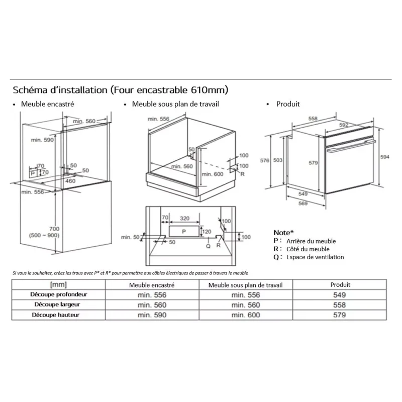 • Type d’encastrement : Four standard (60 x 60 cm)