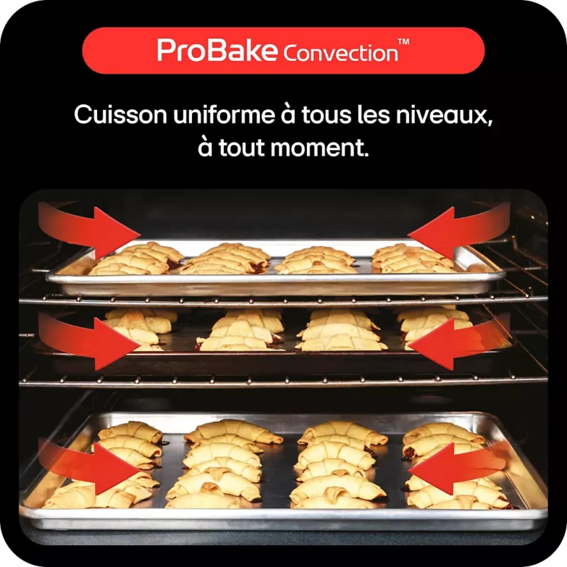La technologie ProBake Convection™ garantit une chaleur constante et précise grâce à deux résistances et un système à deux vitesses, assurant une cuisson optimale et uniforme pour tous types de plats. De plus, la fonction SteamAssist avec un générateur de vapeur intégré et un réservoir d’eau d’1 litre, permet de cuire les aliments de manière saine, en préservant leurs nutriments et saveurs.