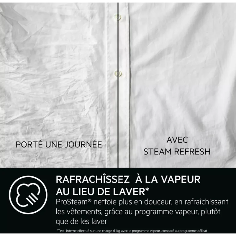 - Rafraîchissement vapeur : oui, programme dédié qui désodorise et donne une sensation de fraîcheur à votre linge