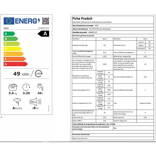 - Lave linge hublot ASKO W4096R.W/3