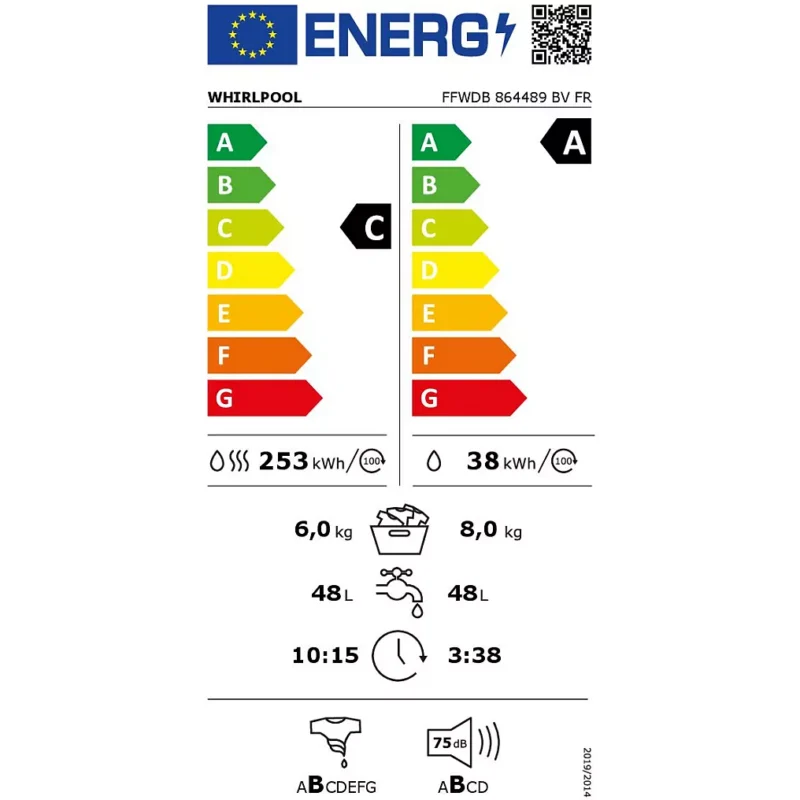 • Lave linge séchant hublot WHIRLPOOL FFWDB864489BVFR