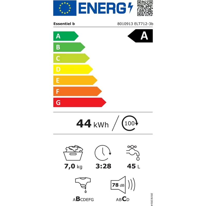 - Niveau sonore en décibels max. en essorage : standard (78 db)