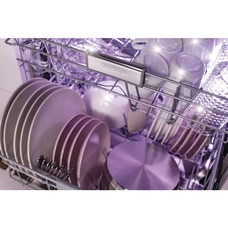 Grâce à la lumière UV, placée dans le système hydraulique du lave-vaisselle Gorenje, vous obtenez un effet antibactérien même à basse température, comme 55°C.