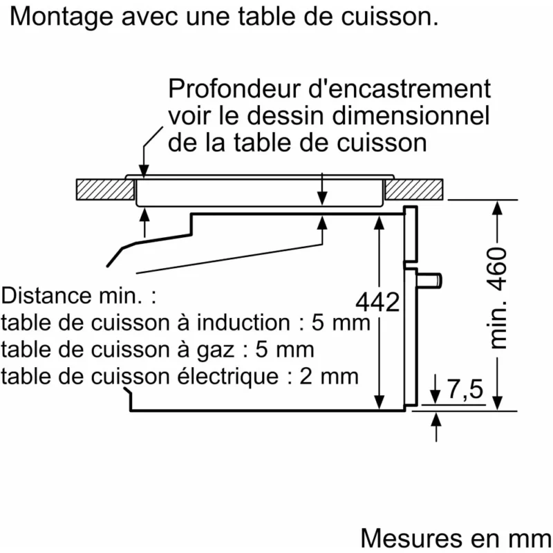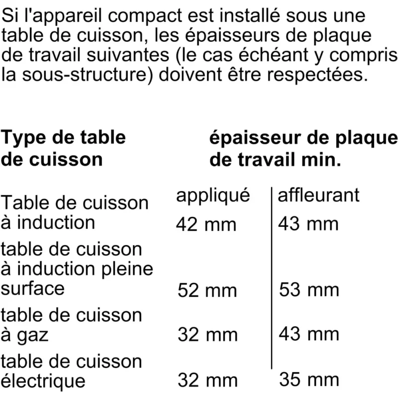 • Hauteur niche d’encastrement : Micro ondes hauteur 45 cm