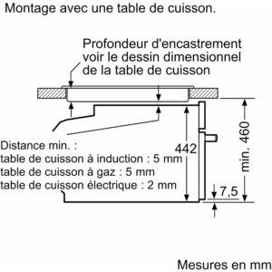 - Hauteur niche d’encastrement : Micro ondes hauteur 45 cm