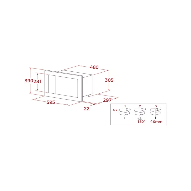 - Hauteur niche d’encastrement : Micro ondes hauteur 38 cm