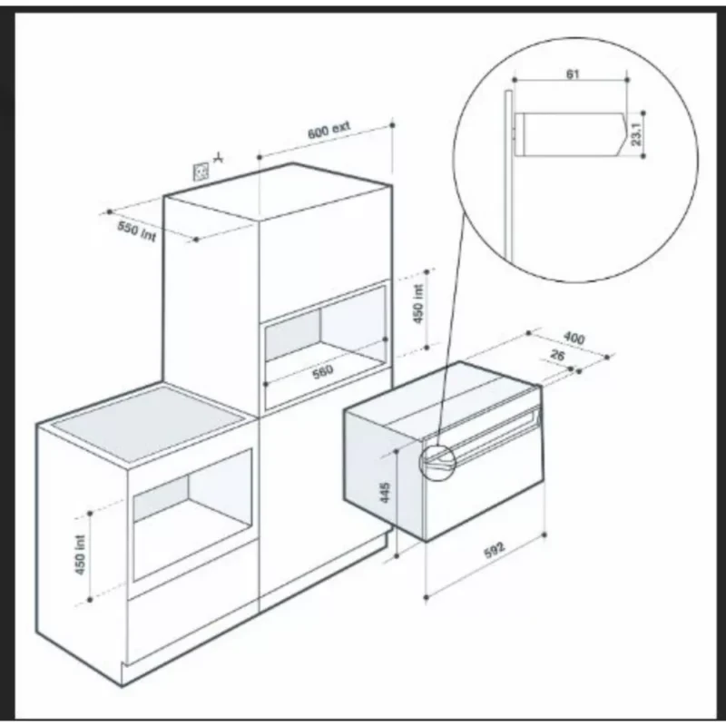 - Hauteur niche d’encastrement : Micro ondes hauteur 38 cm