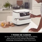 - 7 modes de cuisson : Max Crisp, Air Fry (Frire sans huile), Roast (Rôtir), Bake (Cuire au four), Reheat (Réchauffer), Déshydrater, Prove (Faire lever)